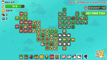 - Tile-based farming where the goal is to maximize yields to survive the rent.